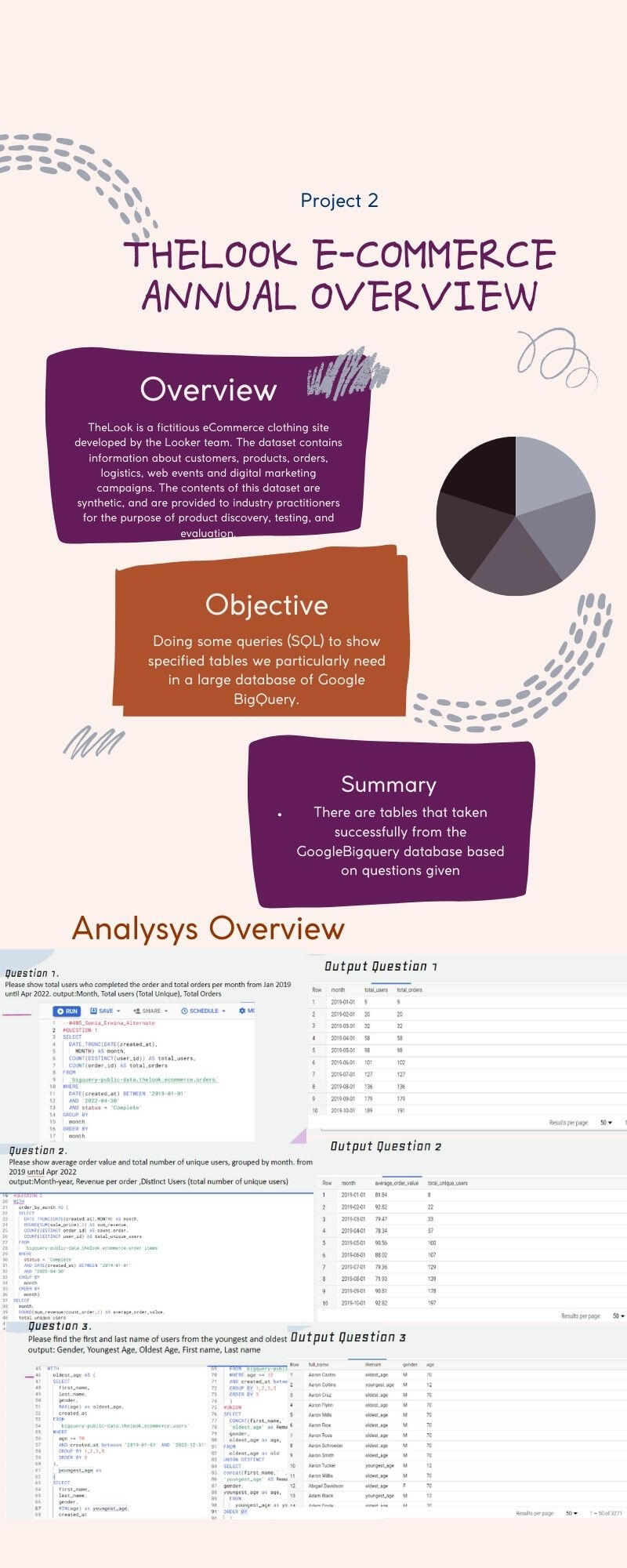These are some of the projects I did recently while I was a student at revou. Among those are Bycer Marketing Strategy, The Movie TV Dashboard, and TheLook E-Commerce Annual Overview using SQL.