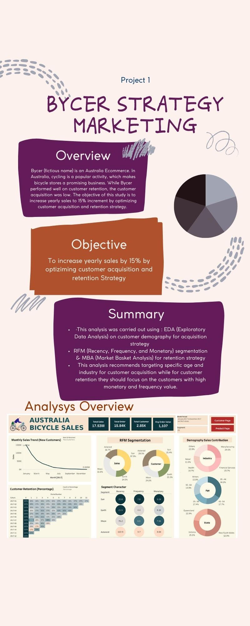 These are some of the projects I did recently while I was a student at revou. Among those are Bycer Marketing Strategy, The Movie TV Dashboard, and TheLook E-Commerce Annual Overview using SQL.